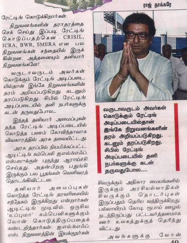 பொதுவா குமுதம் ராஜ் தாக்ரே மாட்டிக்கொண்டதால் கட்டுரையை வெளியிட்டிருக்கு. இல்லைனா கட்டுரை வந்திருக்காது (நேரடி பாஜகவாக இருந்தால்).