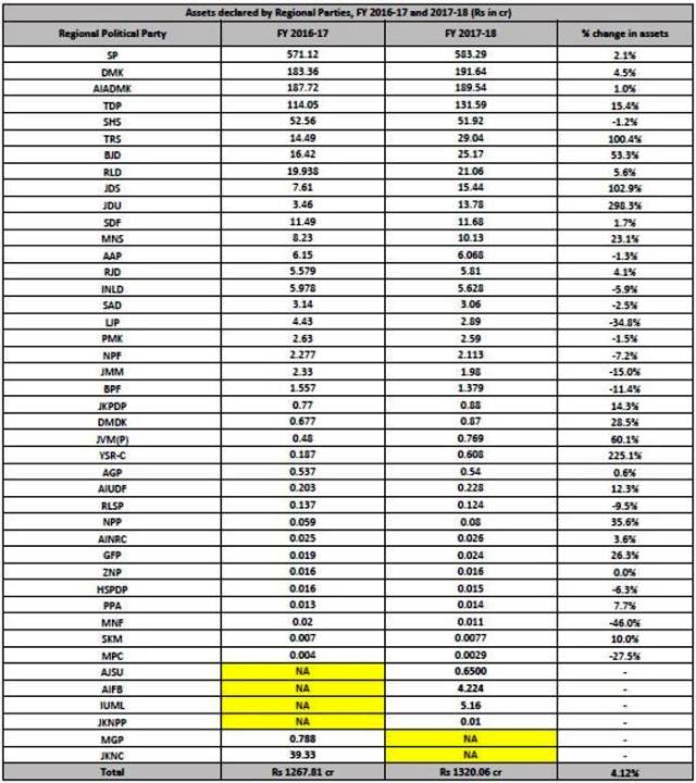 மாநிலக் கட்சிகளின் சொத்துக்கள் மற்றும்