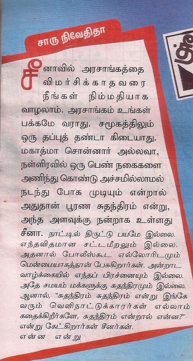 சாரு நிவேதிதாவின் கட்டுரையில் சீனா பற்றி