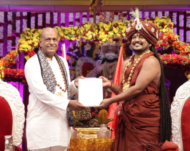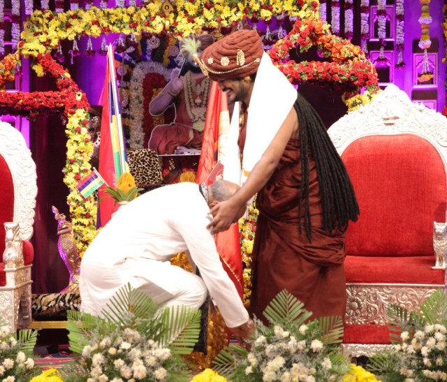 High Commissioner of Mauritius in India, Jagdishwar Goburdhun, visited Nithyananda petham in Bengaluru on the occasion of Guru Purnima. at this event, Goburdhun met Nithyananda and signed the official paperwork to open a Nithyananda Gurukul and Nithyananda University in Mauritius.