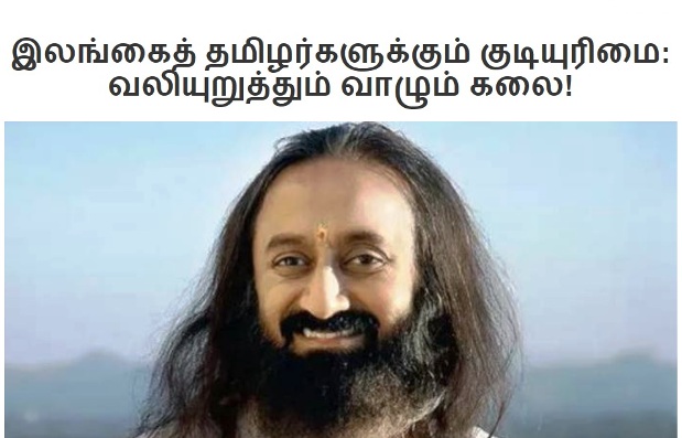 /நீங்கள் மதிப்பு வைத்திருக்கும் ஸ்ரீ ஸ்ரீ-ஜி ஒரு தவறான கருத்தை வெளியிடுகிறார் என்று// – உங்கள் மீது மிகுந்த மதிப்பு வைத்திருக்கிறேன். அதற்காக உங்கள் கருத்துக்கள் எல்லாமே என் கருத்தோ இல்லை நான் ஆதரிப்பதாகவோ ஆகிவிடுமா? அவர் ஒரு ஆர்கனைசேஷன் தலைவர். அவருடைய இந்த ஸ்டேட்மெண்ட், என்னைப் பொறுத்த வரையில் ஆர்கனைசேஷன் தலைவர் என்ற முறையில் சொல்லப்பட்டது என்றுதான் எண்ணுகிறேன். அவருக்கு நிறைய கிளைகள் ஈழத்தமிழர் வசிக்கும் பகுதிகளில் உண்டு (உலகில்)