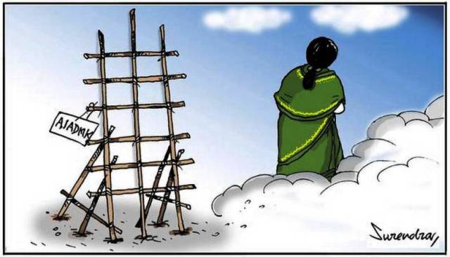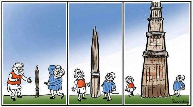 கடைசி கார்ட்டூன் AAP வளர்ச்சியைக் காட்டுகிறது. AAP யின் தேர்தல் சின்னம் துடைப்பம். துடைப்பம் வளர்ந்து டெல்லியில் குதுப் மினார் ஆகிவிட்டது. Jayakumar