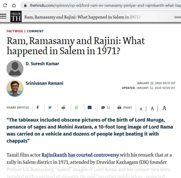“Ram, Ramasamy and Rajini : What