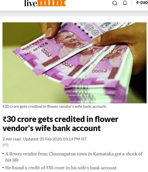 திடீரென்று ஒரு நாள் 30 கோடி ரூபாய் வரவு