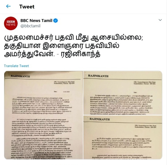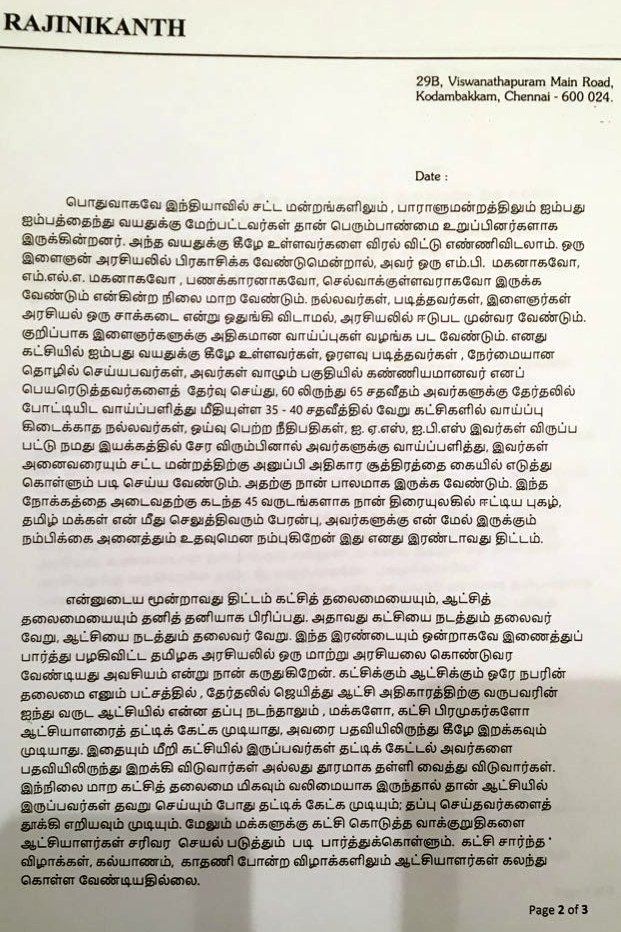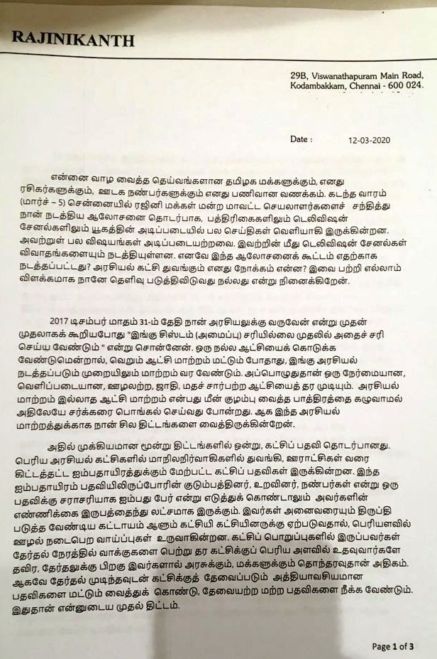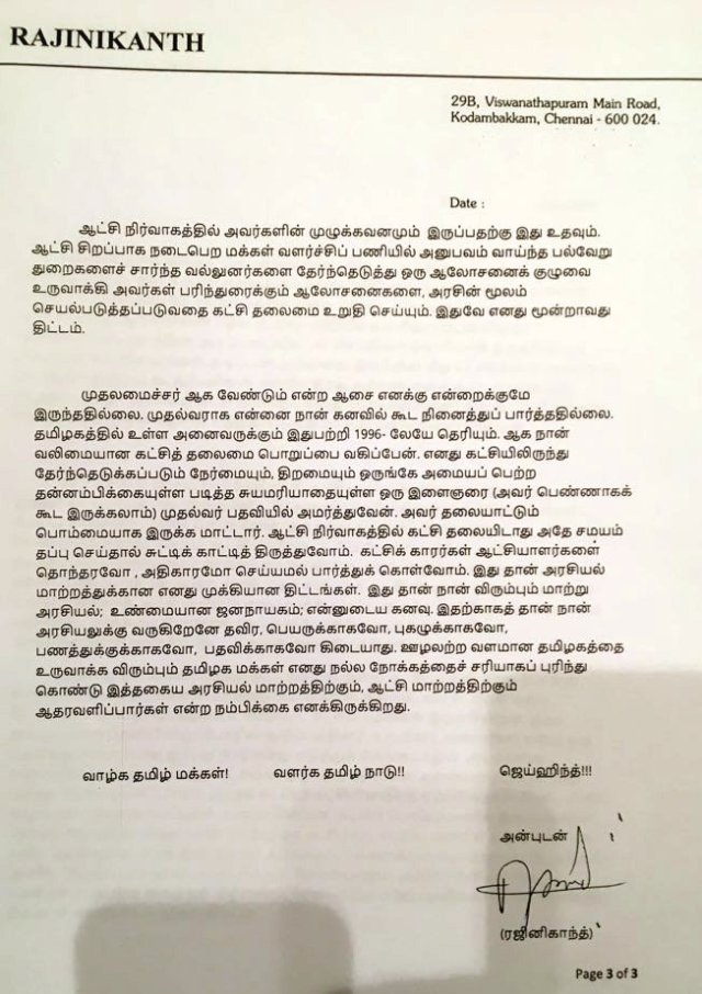 மேலே எழுத்து பூர்வமாக ரஜினி வெளியிட்டிருக்கும்