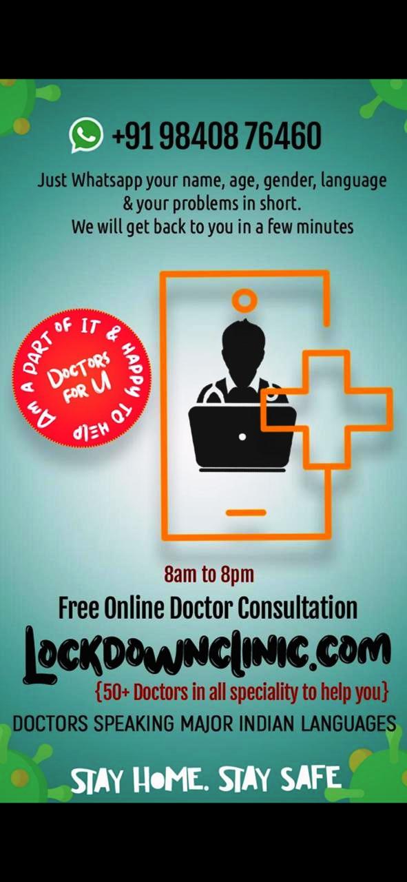 Anyone needs online consultation we are available.. more than 50 doctors from Ramachandra hospital alumini group are there for help.. jus dial the above number and get ur consultation for free .. pls forward it to other groups.. all speciality doctors are there for help !