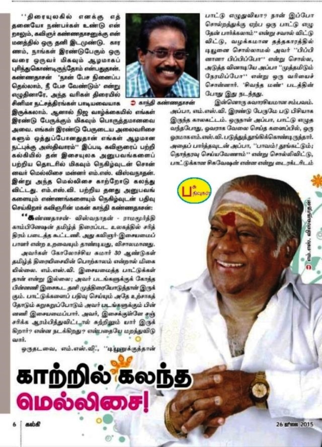 இன்றைய தினம், கல்கி வார இதழில், வெளிவந்த
