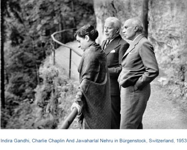 பிரதமர் நேருஜியும், இந்திராவும், சார்லி சாப்ளினுடன் -1953