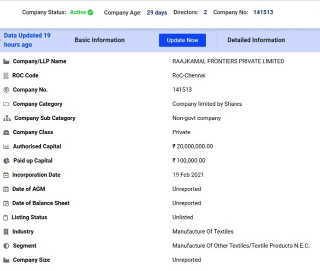 RAAJKAMAL FRONTIERS PRIVATE LIMITED என்கிற பெயரில்