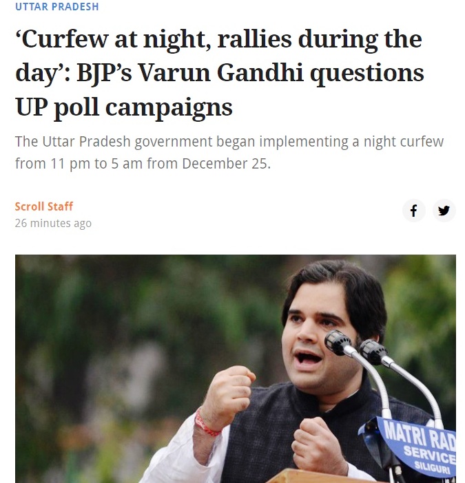 வருண் காந்தி தனது டுவிட்டர் பக்கத்தில் வெளியிட்டுள்ள