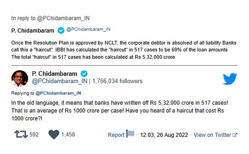 ப.சிதம்பரம் ஏற்கனவே மத்திய அரசின் பல்வேறு திட்டங்களையும் கொள்கைகளையும் விமர்சித்து வரும் நிலையில், வங்கிகள் கார்பரேட் நிறுவனங்களின்