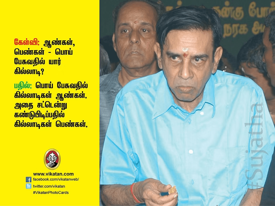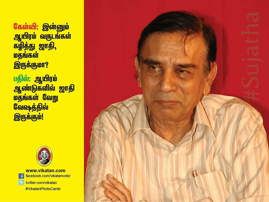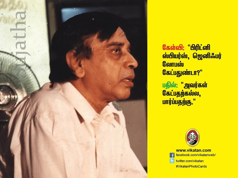 Correct. Sujatha is Sujatha. Only one MGR. Only one Sivaji. Only one Kalaingar. Likewise only one Sujatha.