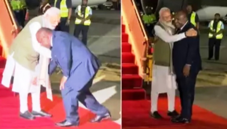அதை பாதியிலேயே தடுத்த மோடிஜி, அவரை கட்டியணைத்து