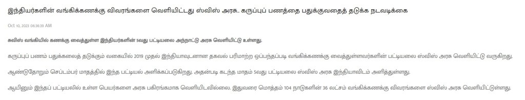 இப்போது விவரங்கள் 5 தடவை – அதிகாரபூர்வமாக ஸ்விஸ் அரசிடமிருந்து வந்தும் – ஒரு விவரமும் வெளிவரவில்லையே….