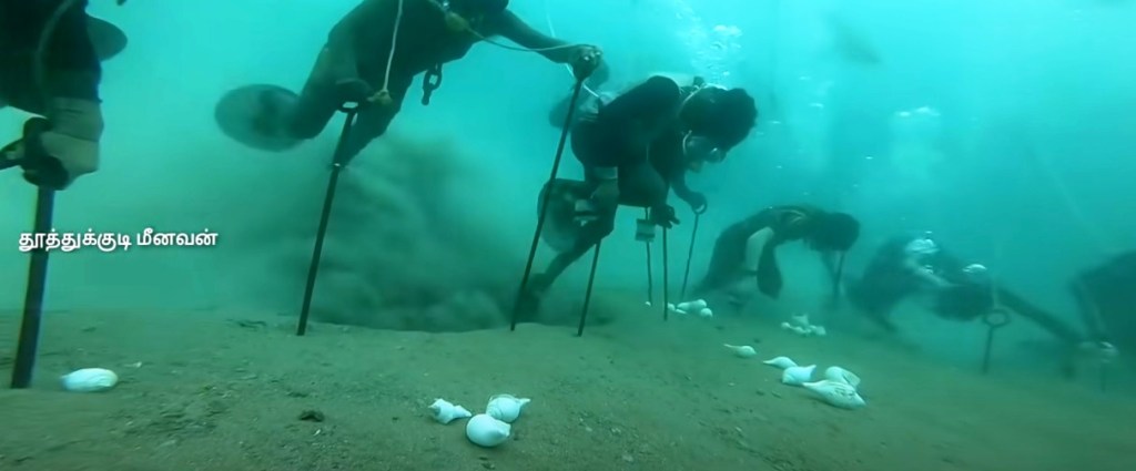 அவர்கள் ஆழ்கடலில் மூழ்கி சங்கெடுக்கும் காட்சிகள்