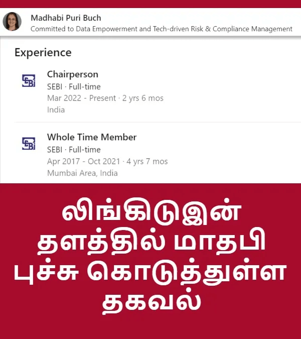“எங்கள் கணிப்புக்கு ஏற்றப்படி மாதபி புச் மற்றும் அவரது கணவர் தவால் புச் ஆகியோர் வினோத் அதானி பயன்படுத்திய அதே மர்மமான பெர்முடா மற்றும் மொரிஷஸ் பண்ட் நிறுவன கட்டமைப்புகளில் பங்கு வைத்திருந்தனர் என்பது எங்களுக்கு முன் தெரியவில்லை” என்றும் அறிக்கையில் கூறப்பட்டுள்ளது.