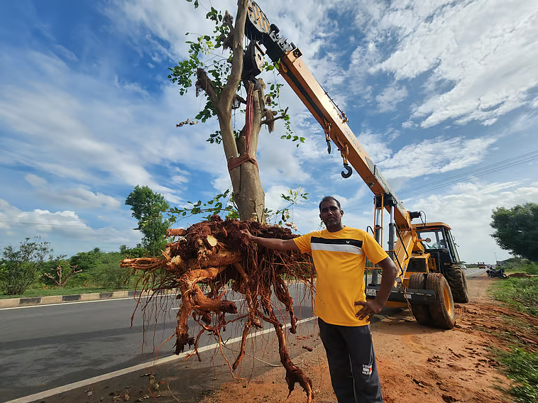 இந்த நிலையில் மேம்பாலம் அமைப்பதற்காக அந்த மரங்கள் வெட்டப்பட இருந்தன. இந்திய தேசிய நெடுஞ்சாலை ஆணையம், இந்த மரங்களை வேருடன் பிடிங்கி வேறு இடத்தில் நட்டு மறுவாழ்வு அளிக்க முடிவும் செய்து எங்களுடைய கிரீன் கேர் அமைப்பிற்கு அந்த பணியை வழங்கி அனைத்து உதவிகளையும் செய்து கொடுத்தனர்.