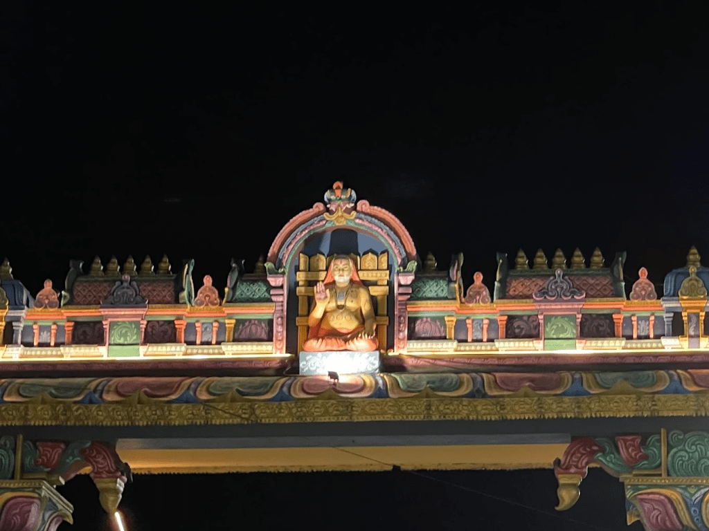 1671 -ஆம் ஆண்டு, துங்கபத்ரா நதிக்கரையில், மந்திராலயத்தில், ராகவேந்திர சுவாமிகள் தனது ஜீவசமாதியில், பிருந்தாவனப் பிரவேசத்திற்கு முன் –