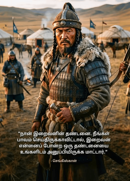 செங்கிஸ்கான் (Genghis Khan) — வெறும் ஒரு போர்வீரன் மட்டுமல்ல, உலக வரலாற்றின் திசையையே மாற்றியமைத்த ஒரு மகா ஆளுமை. ஒரு சாமானியச் சிறுவன், பல நாடோடி இனங்களை ஒன்றிணைத்து உலகின் மிகப்பெரிய நிலப்பரப்பு சாம்ராஜ்யத்தை எப்படிக் கட்டியமைத்தான் என்பது ஒரு பிரமிக்கத்தக்க வரலாறு.